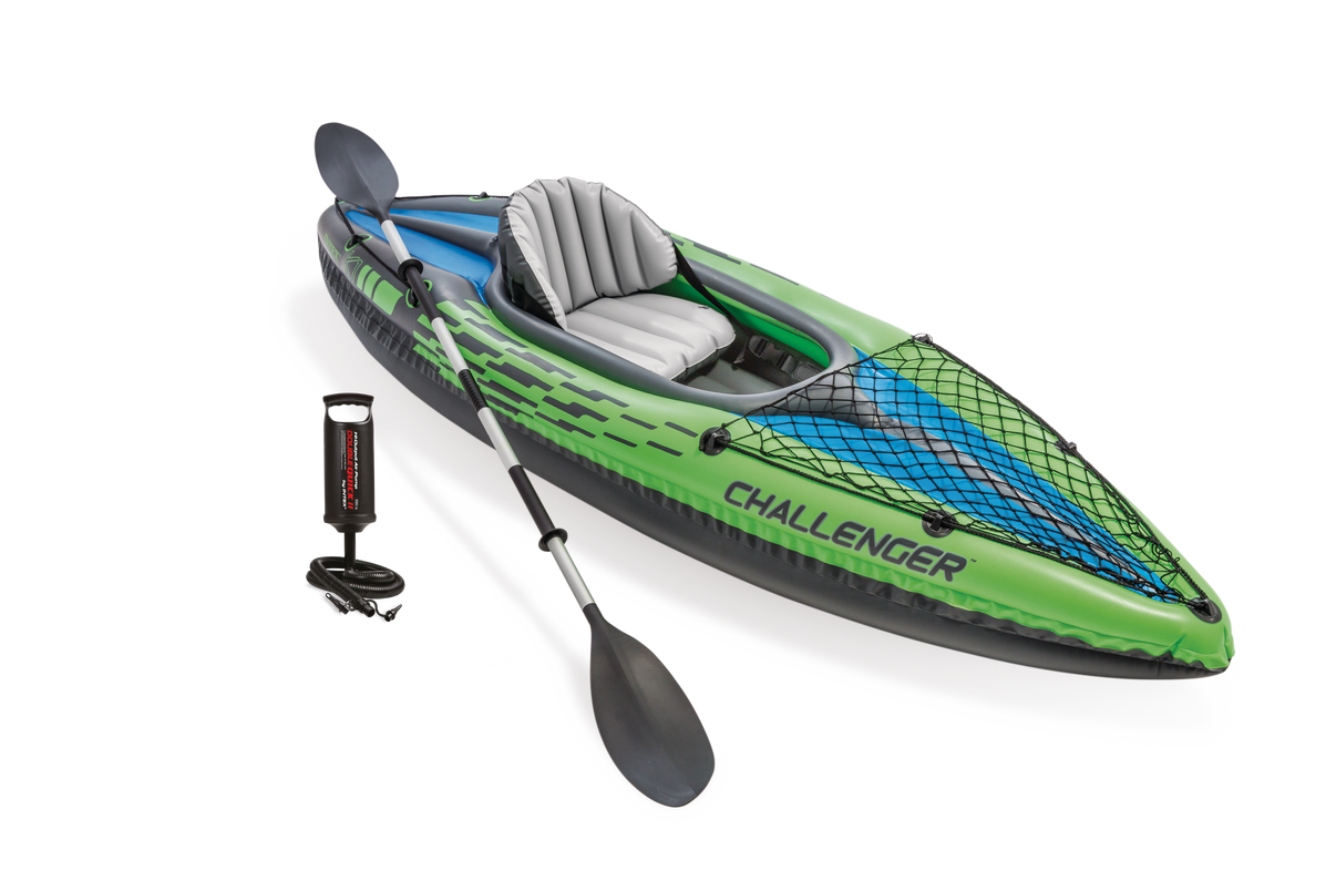 Med en låg profil och en bekväm och rymlig cockpit med plats för en person, är Challenger K1-kajaken särskilt lämplig för turer på sjöar och lugna floder. Det uppblåsbara sitsen med ryggstöd kan justeras, och det uppblåsbara l-beam golvet säkerställer båtens komfort och hållbarhet. Den har en strömlinjeformad design och en robust vinylkonstruktion som gör det lätt att paddla, samtidigt som det sportiga uttrycket syns väl på vattnet.