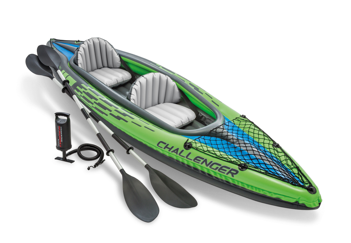 Med en låg profil och ett bekvämt och rymligt cockpit som rymmer 2 personer, är Challenger K2 kajaken särskilt lämplig för seglatser på sjöar och lugna floder. De uppblåsbara sätena med ryggstöd kan justeras, och det uppblåsbara L-balkgolvet säkerställer båtens komfort och hållbarhet. Den har en robust vinylkonstruktion och en strömlinjeformad design som gör den lätt att paddla, samtidigt som det sportiga utseendet gör att den syns på vattnet.
